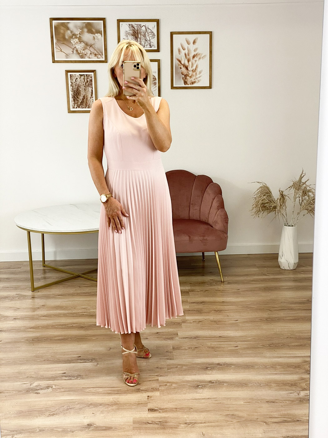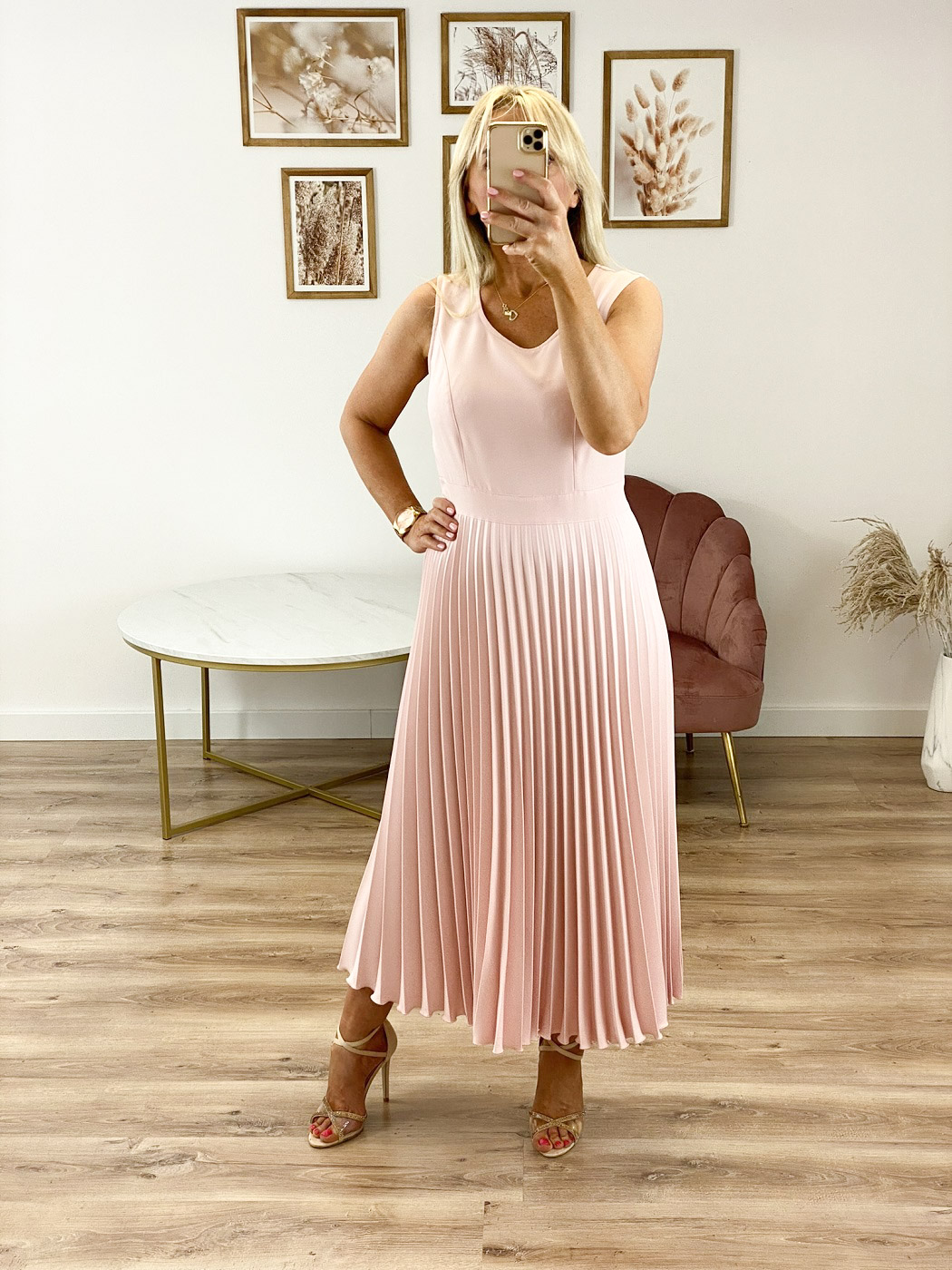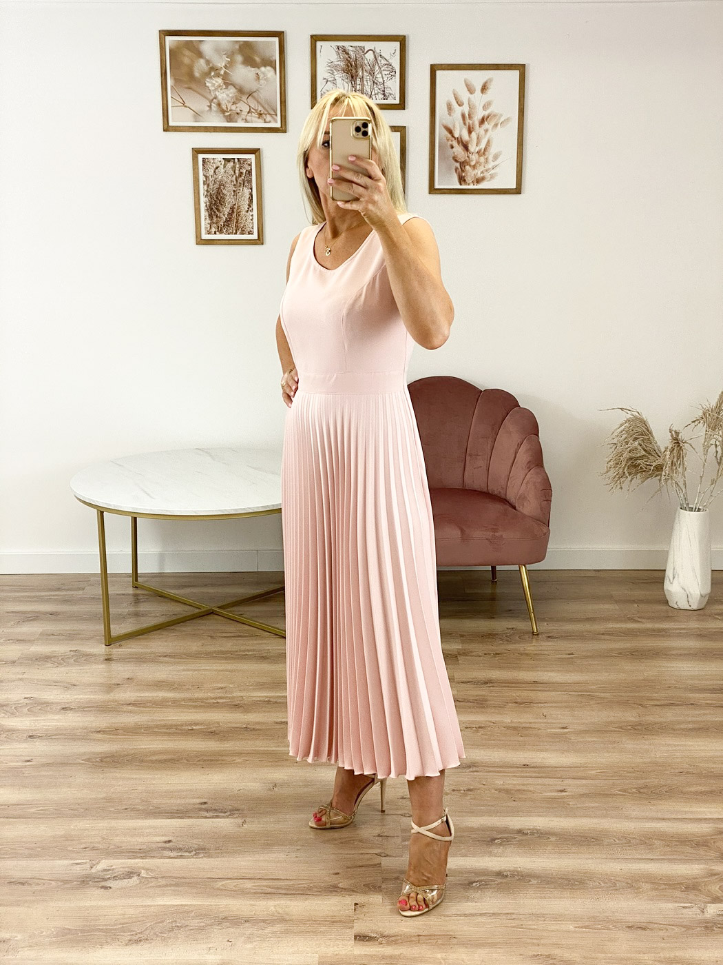 FERRE - midi sukienka z plisowanym dołem i dopasowaną górą. W talii posiada pasek podkreślający figurę. Zapinana z boku na kryty zamek.