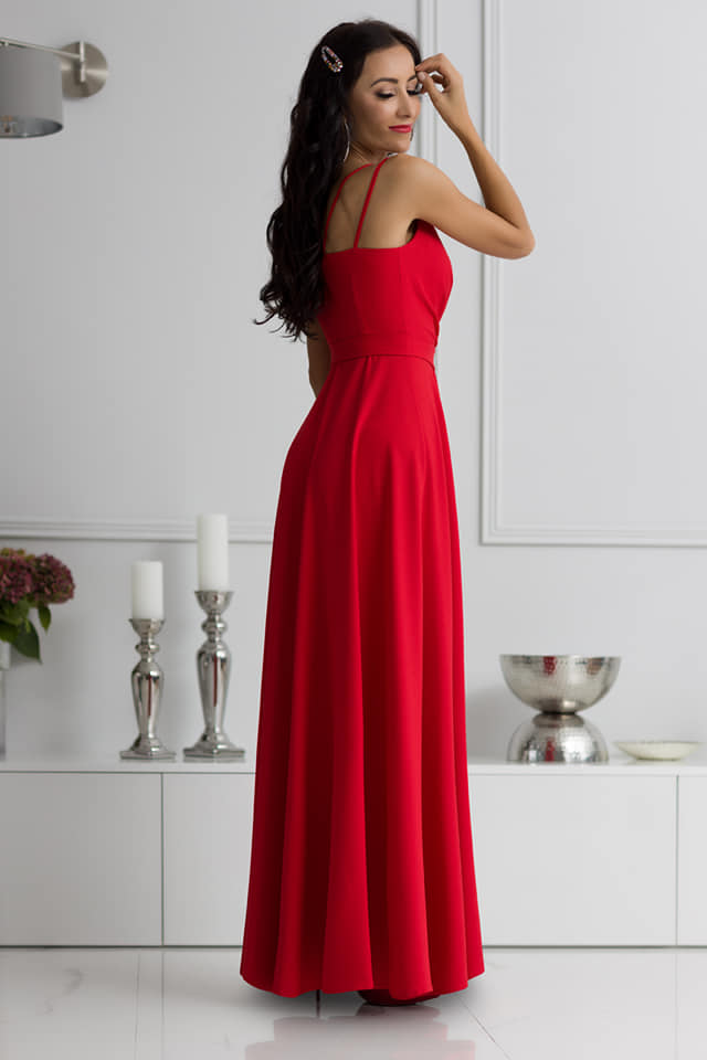 PARIS GŁADKA SUKIENKA NA RAMIĄCZKACH MAXI CZERWONA