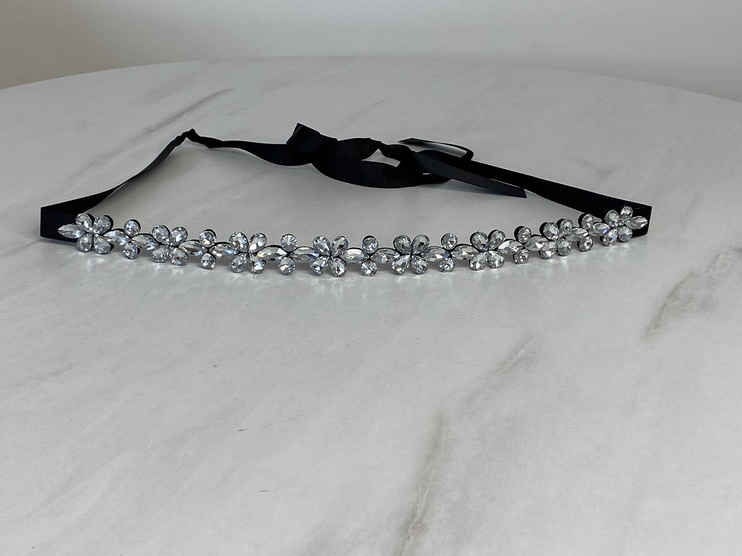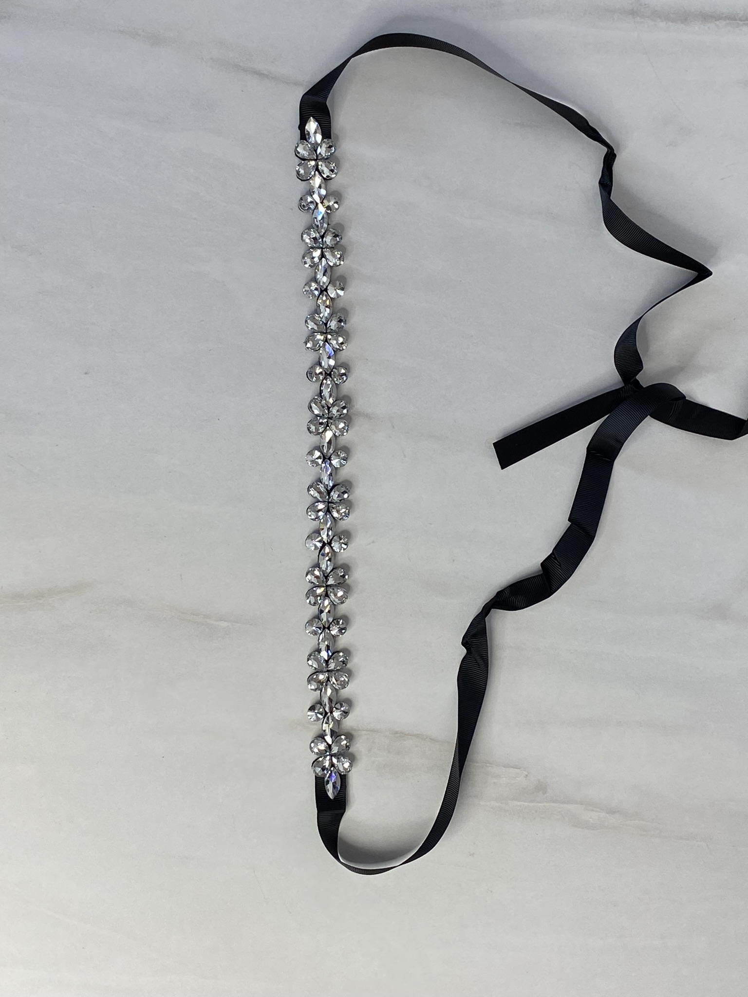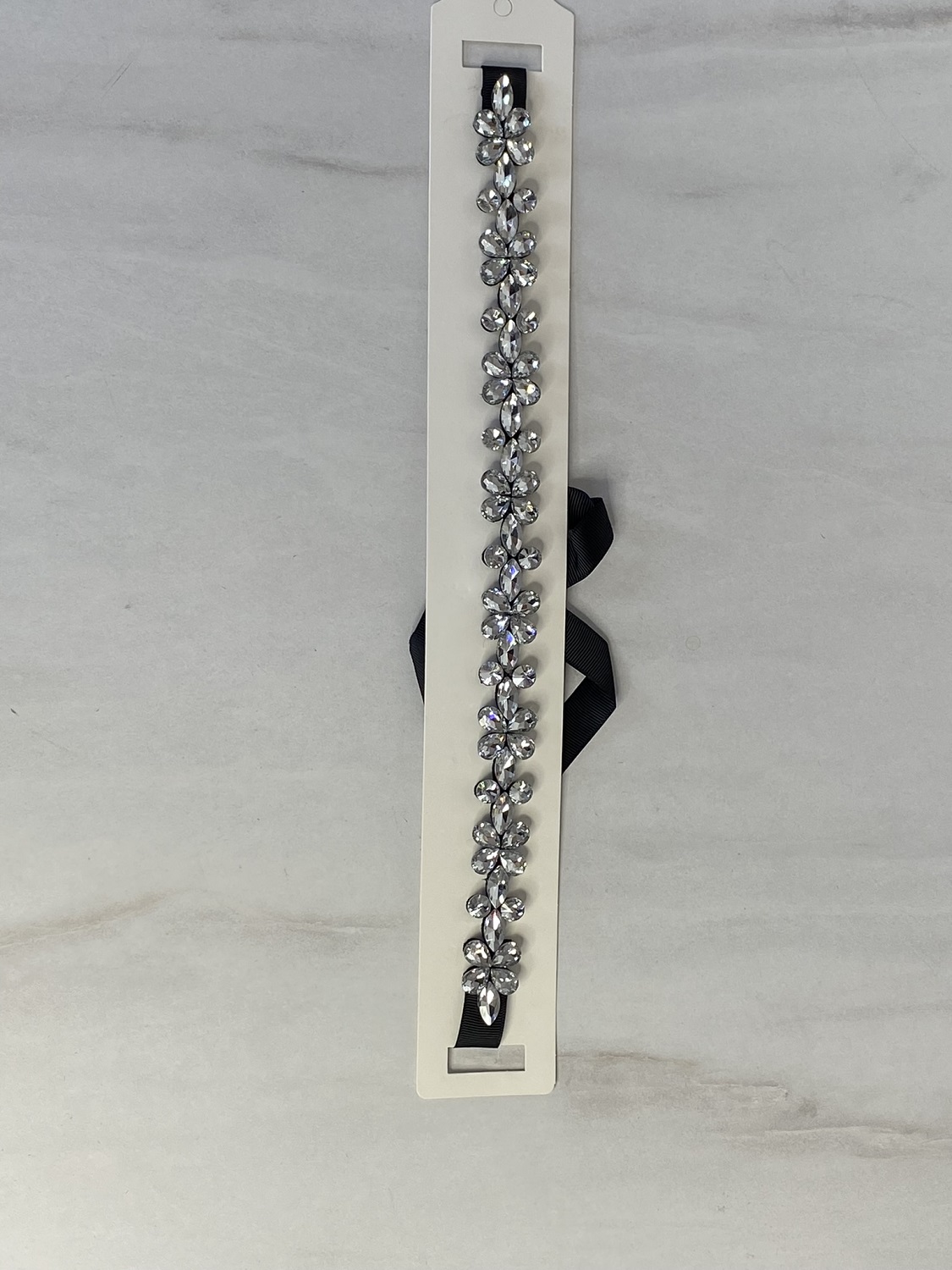 Pasek z kryształkami w kolorze srebrnym.